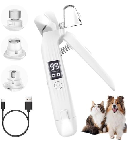 GABRIELLE Lima elettrica per unghie 2 in 1 per cani, gatti, gattini, tagliaunghie con display elettronico, ricaricabile tramite USB