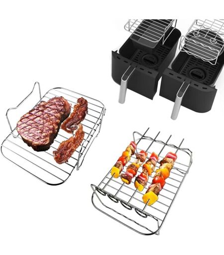 SERBIA Set di 2 griglie per friggitrice ad aria, griglia di cottura multiuso con 4 bastoncini per barbecue, accessori per friggitrice ad aria compatibili