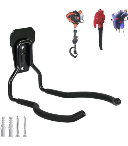 Robusto e durevole: il supporto per tosaerba è realizzato in acciaio e rivestimento in PVC antiscivolo, impermeabile, antiruggine, antischeggiatura e non richiede manutenzione. Il rivestimento in PVC consente di afferrare e tenere saldamente l'utensile, senza preoccuparsi che gli oggetti scivolino o si graffino. Il supporto per tosaerba a parete è molto robusto e ogni supporto può sostenere 23 kg, sufficienti per sostenere tosaerba pesanti. Supporto universale per tosaerba a parete adatto a diverse pareti: il supporto per tosaerba a parete è compatibile con quasi tutti i tipi di tosaerba. tosaerba, compatibile con Einhell, Gloria, Fuxtec e altri. Il supporto per tosaerba si adatta a molti tipi di pareti. Secondo le istruzioni di installazione, è possibile installare il supporto da parete per tosaerba ovunque su diversi tipi di pareti, come cemento, mattoni, legno, ecc. La distanza tra i fori di montaggio del gancio da parete per tosaerba è di 4 cm. SUPPORTO DA PARETE VERSATILE PER ...