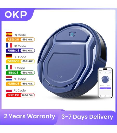 Aspirapolvere robot OKP K2 Aspirazione 2000 Pa, controllo assistente APP/Google, ideale per peli di animali domestici, moquette e pavimenti duri ...