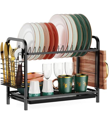 SINBINTA Scolapiatti a 2 ripiani, grande capacità Appoggio scolapiatti da cucina, scolapiatti con Vassoio Raccogligocce e Porta Utensili, Portautensili e