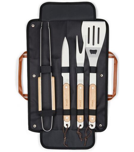 Set completo di 4 accessori per barbecue Livoo GS162, composto da forchetta, pinza, spatola e coltello. Accessori durevoli e di qualità, realizzati in acciaio inossidabile con manici in legno di gomma. Facile da riporre e trasportare grazie alla custodia in cotone con manici in ecopelle. Tipo di prodotto: Accessori per barbecue. 4 accessori: forchetta, pinza, spatola e coltello. Materiali: acciaio inossidabile. Tipo di maniglie: Legno di caucciù. Set composto da: Custodia in cotone con chiusura con bottone a pressione e manici in ecopelle. Colore: nero. Dimensioni: 46 x 32 x 4 cm. Peso: 0,80Kg. ...