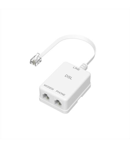 Filtro ADSL spina jack 6p 4c / 2 prese jack 6p 4c - Filtro ADSL : Spina modulare 6p4c a 2 accoppiatori modulari 6p4c Per collegare un terminale analogico (telefono,fax) e un modem ADSL moden ad una rete telefonica Separa i segnali analogico e ADSL. ...