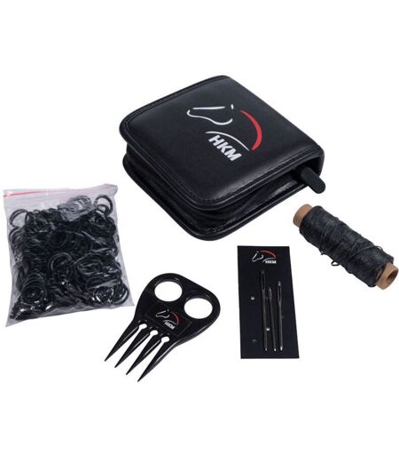 HKM SPORT EQUIPMENT Set di elastici filo aghi e pettine per trecce criniera con borsa: Taglia unica, nero