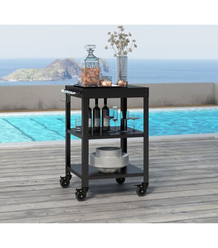 Carrello portavivande Il nostro carrello portavivande da giardino è l'accessorio ideale per chi desidera organizzare feste e riunioni all'aperto con stile e praticità. Perfetto per l'uso su patio, giardino o durante eventi in piscina, il carrello rende il servizio di cibo e bevande estremamente semplice, offrendo allo stesso tempo una soluzione elegante e funzionale per intrattenere gli ospiti. Tre ampi ripiani, ciascuno della dimensione di 49,5 x 49,5 cm, offrono spazio sufficiente per contenere cibi, bevande, bicchieri, piatti e snack. La distanza di 27 cm tra i ripiani permette di sistemare oggetti di varie dimensioni in modo ordinato, mentre la superficie resistente e antigraffio garantisce che il carrello mantenga intatta la sua bellezza anche dopo numerosi utilizzi. Il design robusto assicura che tutto rimanga saldamente al suo posto, rendendolo particolarmente utile anche in occasioni con un numero elevato di ospiti. La mobilità del carrello è assicurata dalle quattro ruote ...
