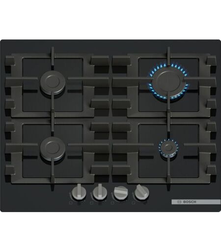 Bosch - Serie 4 PNP6B6K40 Piano cottura a gas 60 cm 5 fuochi Vetro Nero. Colore del prodotto: Nero, Posizionamento dell'apparecchio: Da incasso,