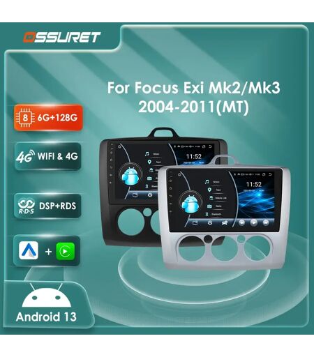 OSSURET Android 13 Auto autoradio Stereo Per Ford Focus EXI MT 2 3 MK2/MK3 2004-2011 Lettore Multimediale 4G WIFI Carplay GPS navi Schermo