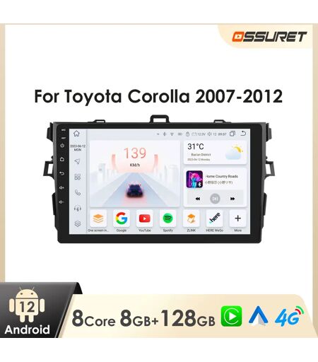 OSSURET Autoradio Android per Toyota Corolla 2007 2008 2009 2010 2011 Carplay Android auto Stereo Audio Multimedia 2Din Head Unit Player