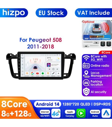 HIZPO DSP Carplay per Peugeot 508 508SW Car Stereo Multimedia Video Player unità principale navigazione GPS Autoradio Android Auto Radio 2 Din