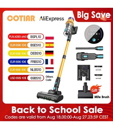 COTIAR V22 650W Aspirapolvere senza fili 55kPa Potenza di aspirazione Aspirapolvere senza spazzole Capacità 1,2 litri Display a LED per tappeti da pavimento Peli di animali domestici