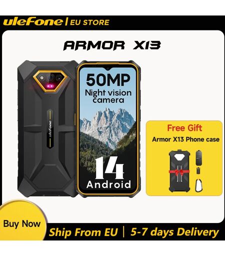 ULEFONE Telefono robusto Armor X13 4G Fino a 12 GB + 64G Android 14 6320 mAh 50 MP Fotocamera principale 6,52 "NFC 4G GPS Versione globale Visione notturna