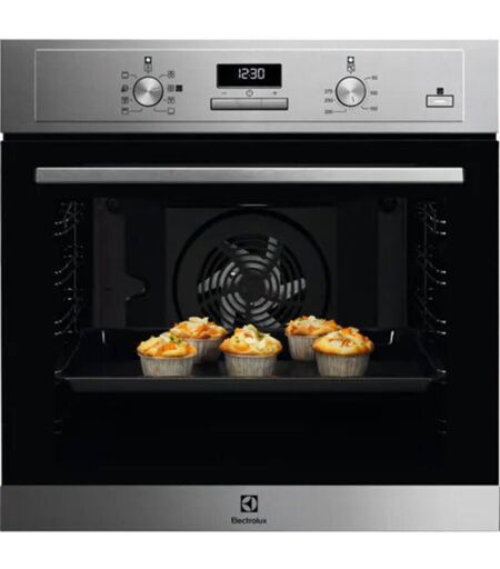 Electrolux COD3S40X Forno Multifunzione Surround con Vapore SteamBake 500. Dimensione del forno: Media, Tipo di forno: Forno elettrico, Capacità interna forno totale: 72 L. Posizionamento dell'apparecchio: Da incasso, Colore del prodotto: Acciaio inox, Tipo di controllo: Pulsanti, Manopola. Tipo di orologio: Elettronico, Tipo di timer: Digitale. Consumo energetico (convenzionale): 0,93 kWh, Consumo energetico (convezione forzata): 0,81 kWh, Scala di efficienza energetica: Da A+++ a D. Tipo di lampada: Alogena ...