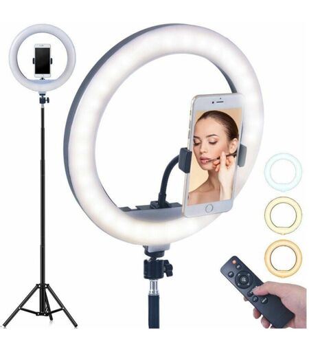 Anello Luminoso Treppiedi Luce Selfie Tik Tok LED Lampada Ring Light Video 30cmPer video e selfie professionali, scopri il potenziale del nostro nuovo anello luminoso LED con treppiede da 30 cm.Illuminazione Potente e Regolabile per Video e Foto di QualitàLa lampada ad anello da 30 cm offre un'illuminazione straordinaria grazie al chip LED ad altissima luminosità. Potrai regolare completamente la luminosità e il colore tramite telecomando o pannellino Touch, scegliendo tra tonalità bianco freddo, naturale o caldo per ottenere l'illuminazione perfetta nei tuoi video e selfie.Telecomando Pratico e Braccetto Regolabile per una Maggiore FlessibilitàIl telecomando incluso permette di controllare l'intensità e il colore della luce a distanza. Inoltre, il braccetto di supporto per smartphone al centro della lampada offre flessibilità e regolabilità per posizionare il tuo cellulare in varie angolazioni di ripresa.Caratteristiche Principali:Diametro anello: 30 cmAltezza treppiede: 65 - 240 ...
