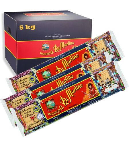Pastificio G. Di Martino Vermicelli 5kg Maxi Formato Antica Pasta di Gragnano Igp Pastificio Di Martino Confezione 10 Pezzi da 500Gr Eccellenza della Campania 100% Grano Italiano Idea Regalo